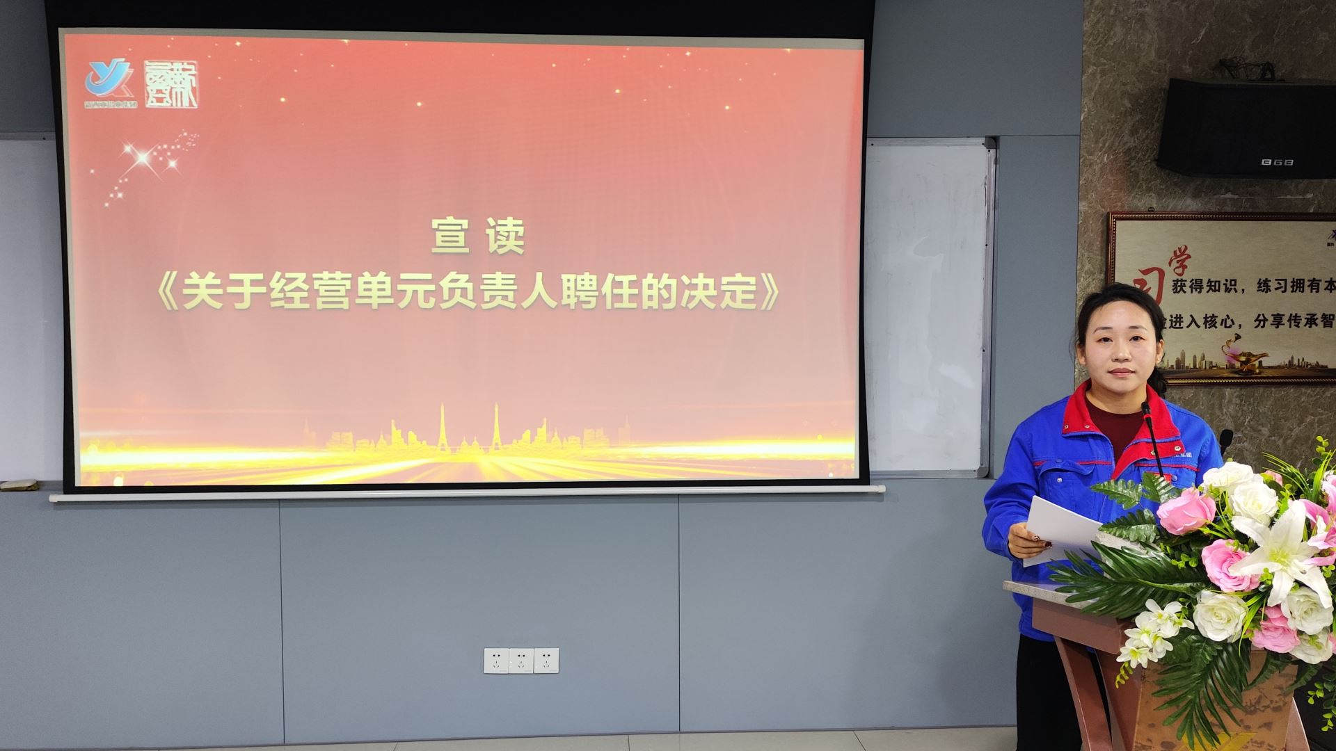 會上,總經理劉斌發表了重要講話。劉總首先對新聘任的管理干部表示熱烈祝賀,并強調了履新后的責任與使命,劉總表示,每位干部都是公司發展的關鍵力量,肩負公司發展的重任和使命,承載著全員的期待,新的一年里應勇于擔當,不負重托。劉總還通過精心準備的PPT,深入闡述了如何干好新一年工作的總體思路和要求。