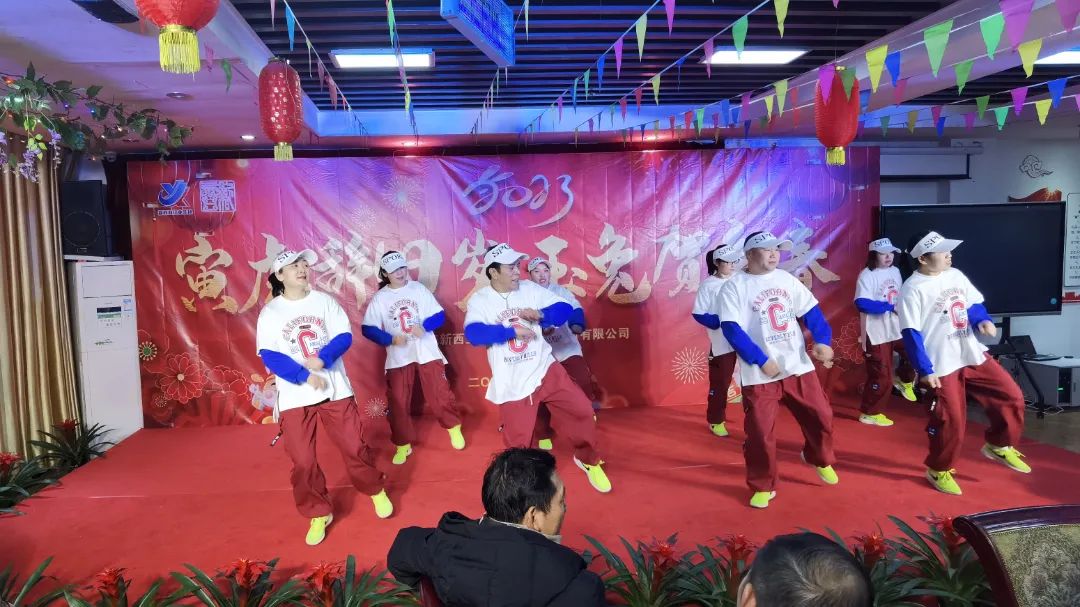16點(diǎn)30分,來自后勤保障部門的姑娘們帶來的舞蹈《福氣要來到》熱舞開場,拉開了新西亞2023新春團(tuán)拜晚會的帷幕。一首開場秀跳罷,臺下觀眾已然沸騰,恭賀新春的氣氛瞬間爆棚。