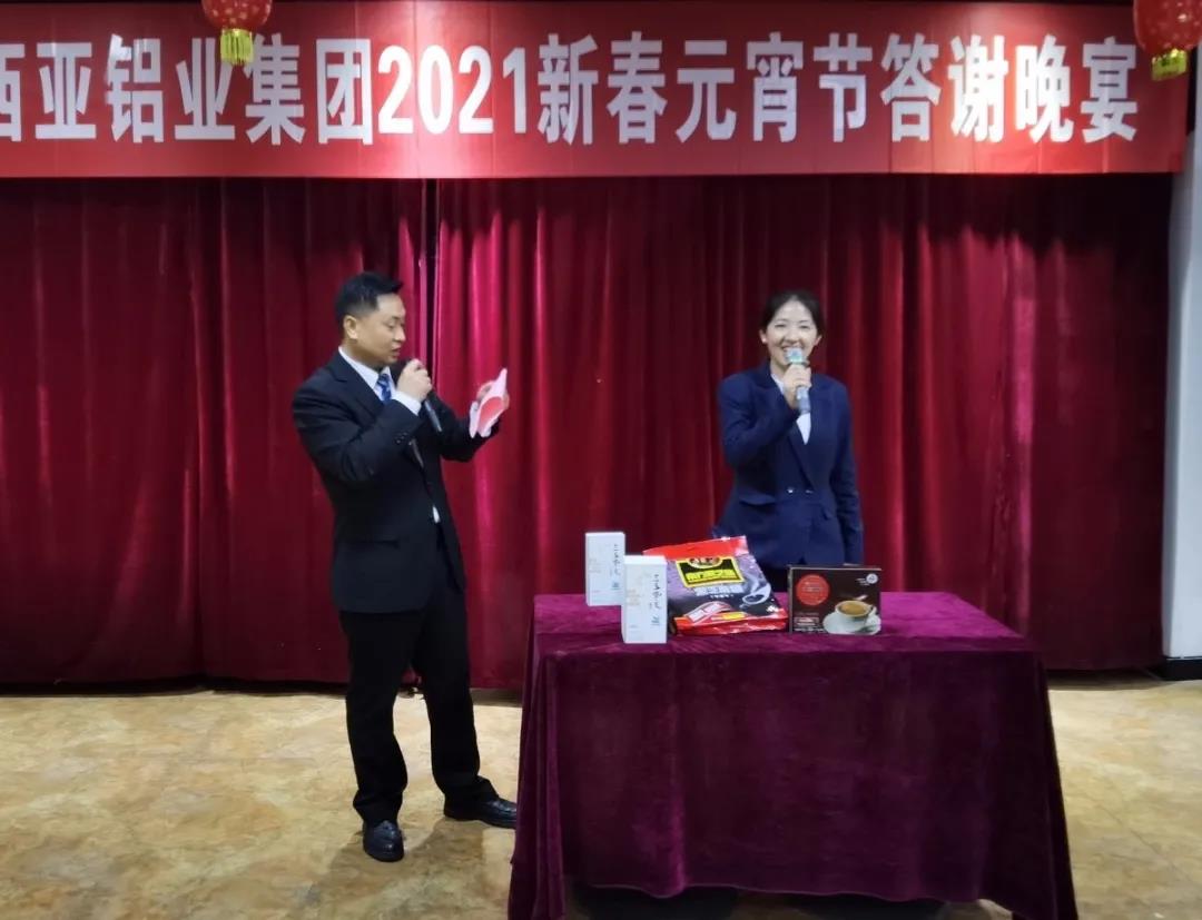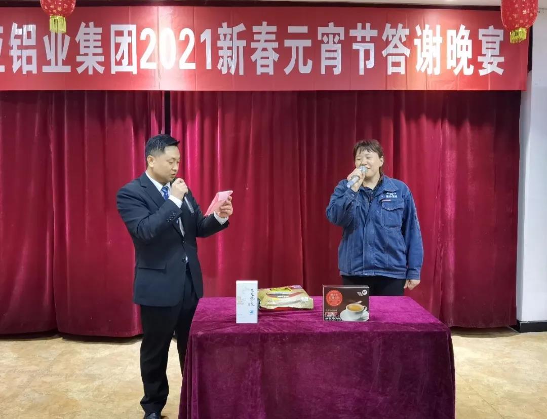 本次晚宴,為進(jìn)一步增加和全體員工之間的互動(dòng),除了設(shè)置有特等獎(jiǎng)、一、二、三等獎(jiǎng)四個(gè)獎(jiǎng)項(xiàng)抽取,還設(shè)置了“聽(tīng)口令搶禮品”、“趣味答題贏大獎(jiǎng)”兩個(gè)環(huán)節(jié)。員工們一邊盡情地品味著美味佳肴,一邊興高采烈地享受著贏大獎(jiǎng)活動(dòng)帶來(lái)的驚喜和快樂(lè)。整個(gè)抽獎(jiǎng)和趣味游戲贏大獎(jiǎng)活動(dòng),掌聲、笑聲、歡呼聲此起彼伏,充分展示出新西亞鋁業(yè)集團(tuán)和諧向上、欣欣向榮的美好局面。