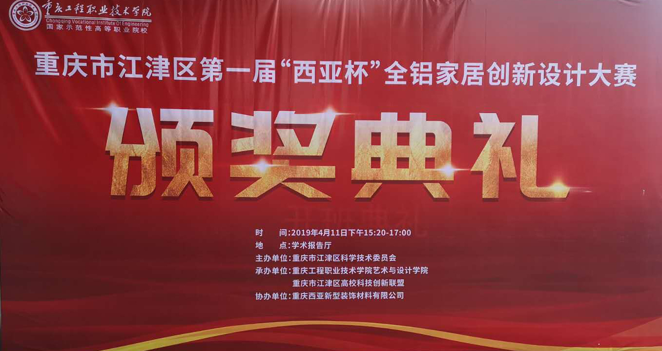 華龍網-新重慶客戶端4月11日21時57分訊(凃小義)今(11)日下午,重慶市江津區第一屆“西亞杯”全鋁家居創新設計大賽頒獎典禮在重慶工程職業技術學院舉行。據了解,本次賽事經歷了啟動、征稿、評審、巡展四個階段,歷時近10個月,給相關院校提供了一個相互交流、相互促進的機會,為設計專業類的優秀學生營造了展示創新設計能力的舞臺。